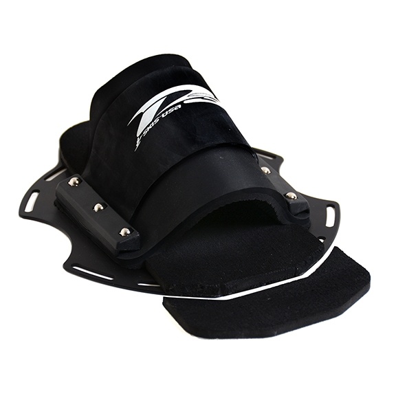 The D3 Leverage PTP all rubber toe strap holds the rear foot firmly in place, is comfortable and is used by virtually every trick skier on the planet. Mounted to a strong 6061 aluminum plate, the PTP has slotted holes allowing the plate to be adjusted for the absolute perfect position. The plate also gives the trick ski additional protection from heel dents. The PTP is not recommended for previous model tricks with the SRP (screw retention plate).